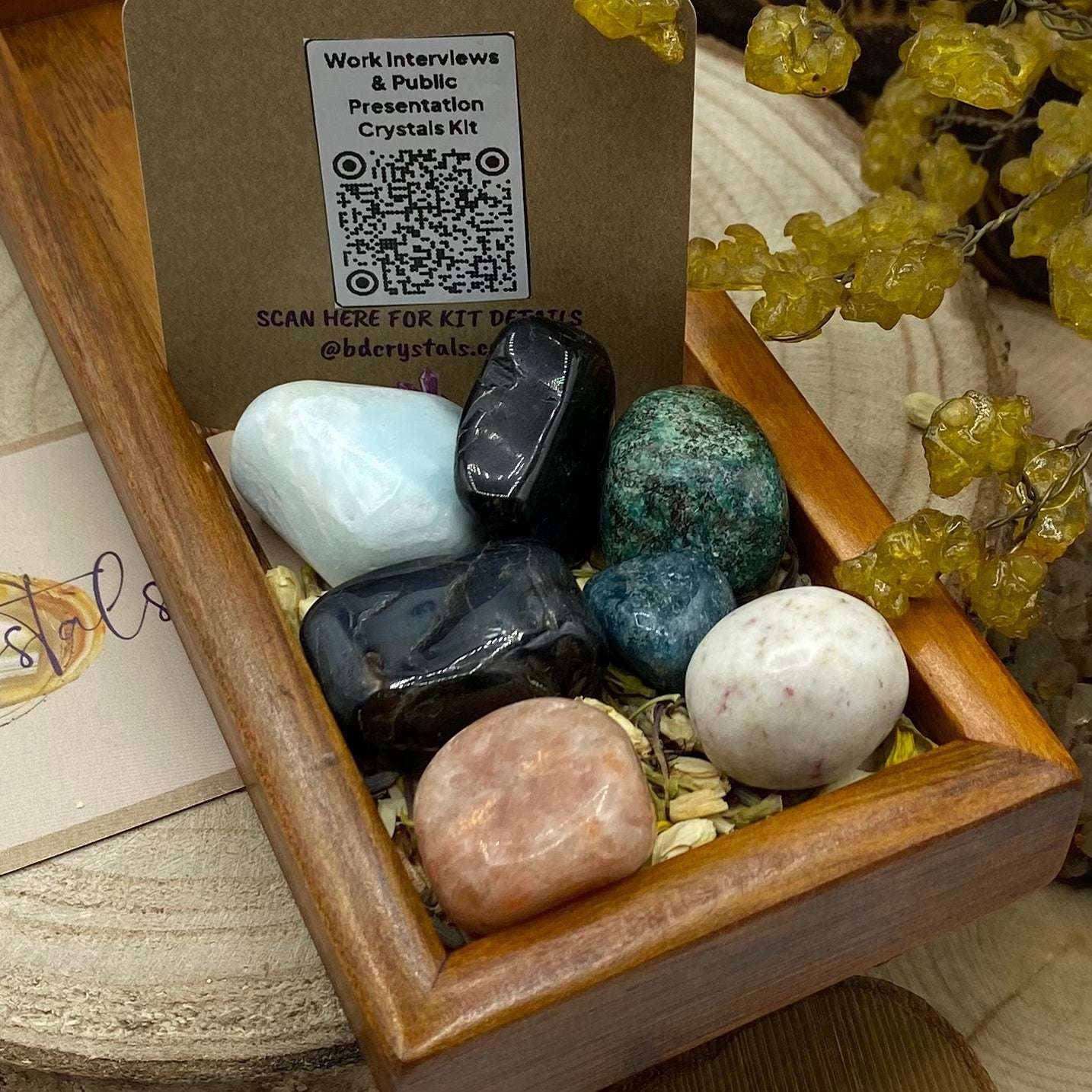 The Work Interviews & Public Presentation Crystals Kit is perfect for anyone looking to improve their chances of landing an interview, and will support those looking for a career change. Use it for interviews, presentations or other events where you need an extra boost in confidence.